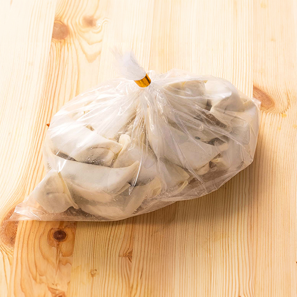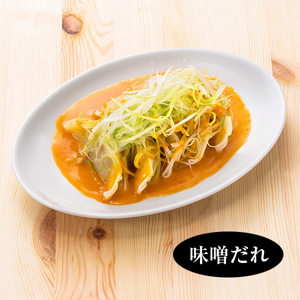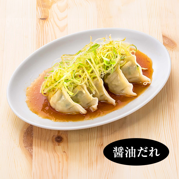国産豚ひき肉と新鮮なキャベツ、ニラ、ニンニク、生姜を使用。野菜の食感が感じられるようにキャベツは大きめにカット。肉汁溢れるジューシーな餡が特徴です。水餃子専用のみそと醤油の2種類のたれが付いています。原材料名